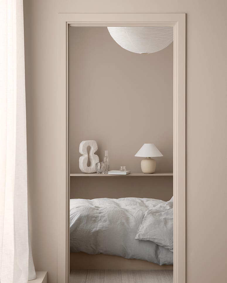 Jotun LADY Minerals Soothing beige, 12075 (vägg) och Klassisk vit, 9918 (lister)