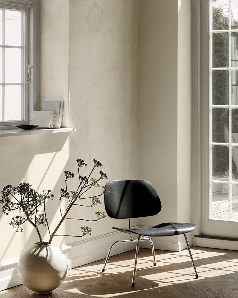 Jotun LADY Minerals Soothing beige, 12075 (vägg) och Klassisk vit, 9918 (lister och fönster)